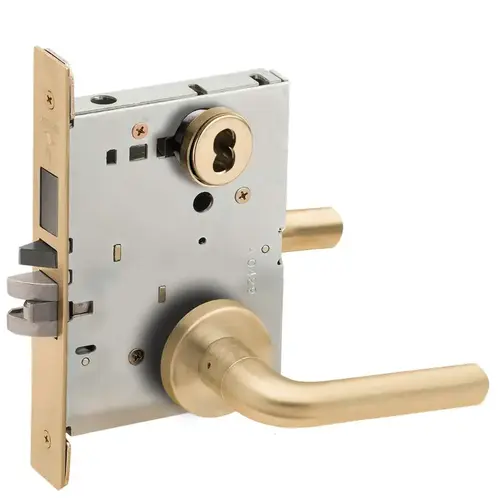 Storeroom Mortise Lock with Deadbolt, 02A Design, SFIC Prep, Less Core, Satin Brass