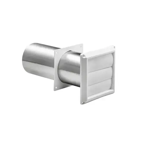 Opening/closing flaps prevents outside elements from entering the vent. UV inhibitor is used to help prevent the premature fading of vent. (1) 4 White plastic louvered vent with 11 tail pipe, (1) 4 White plastic trim plate.