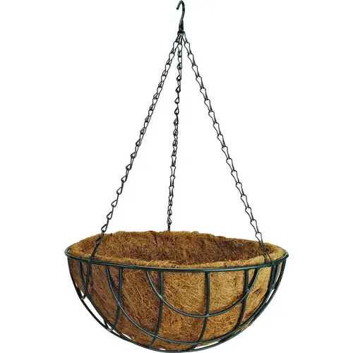 Hanging steel basket with steel chains and a natural coconut fiber liner. Replacement liner Sku #275.7938.