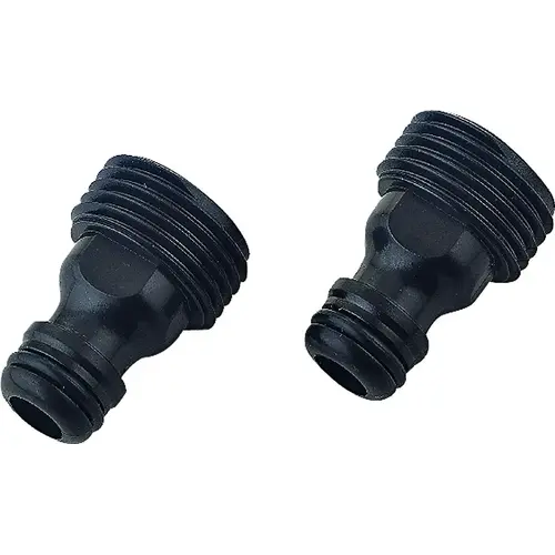 3/4 in plastic male thread tap adapter. In use with 3/4 in quick connector for speedy connection of hose and nozzle.