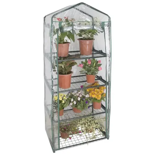 Landscapers Select Green House, 4-Tier, Short Shelves, Zippered Access Door, 1 Doors, Green Powder Coated Steel Frame And Clear Plastic Cover, 27.5 in Length, 19.25 in Width, 65.5 in Height