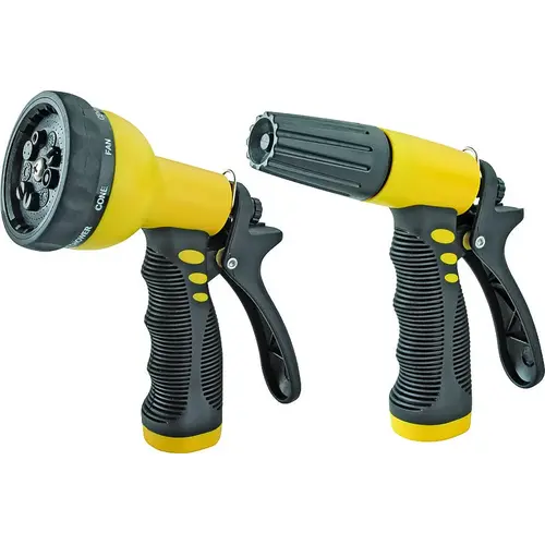 Includes: (1) 9-Pattern Spray Nozzle with Flow Control (1) 3-Way Adjustable Nozzle with Flow Control