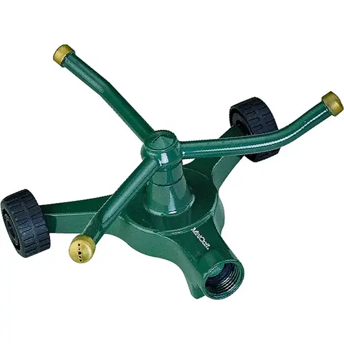 Watering coverage up to 14 m x 14 m (45 ft x 45 ft). Square coverage of approximately 190 m (22025 ft). Solid metal construction. Stable base with easy rolling wheels. Brass spray caps.