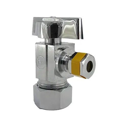 5/8" O.D. Compression Inlet x 1/4" Compression Outlet, Quarter Turn, Chrome, Angle Valve, California & Vermont Lead Free Compliant Product, Carded.
