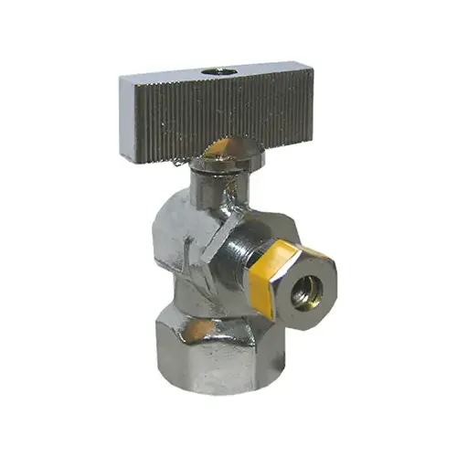 1/2" Female Pipe Thread Inlet x 1/4" Compression Outlet, Quarter Turn, Chrome, Angle Valve, California & Vermont Lead Free Compliant Product, Carded.