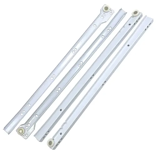 Whether installing new drawers or repairing ones that won’t open or close properly, Laurey Drawer Slide Kit fits most bottom/side-mounted drawer systems. The drawer slide kit is constructed of steel tracks with a white powder-coated finish and self-lubricating plastic rollers.