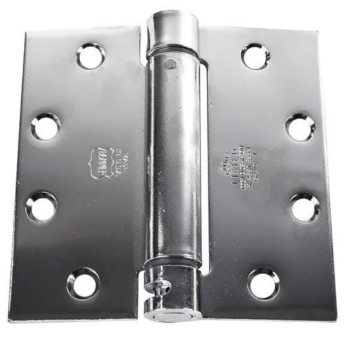 Lubricated Bearing Single Acting Spring Hinge, Commercial Grade Template Hole Patter Square Corner, 4-1/2 In. by 4-1/2 In. Bright Chromium