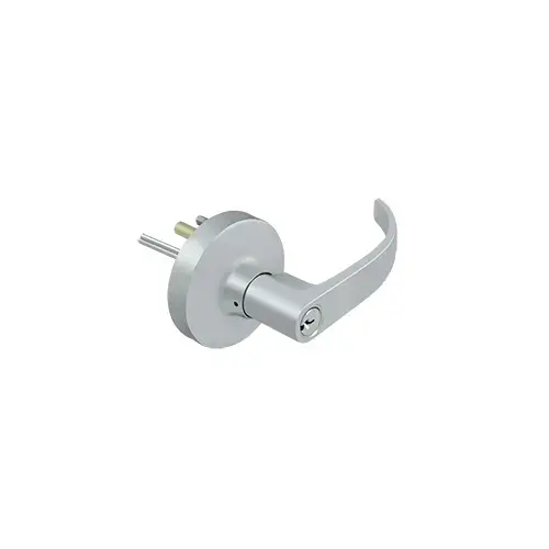 Deltana lever trim for exit device. Features a brushed chrome finish. Schlage C type keyway.