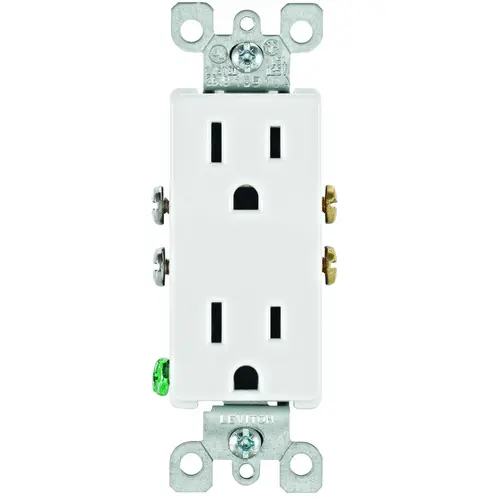 Leviton Duplex Receptacle, 125 V, 15 A, 60 Hz Frequency, 2 Pole, 3 Wires, Push-In, Side Wiring, 14 to 12 AWG Wire, 5-15R, Wall Mounting, Thermoplastic, White, Dimensions: 4.2 in L x 1.3 in W x 0.98 in D