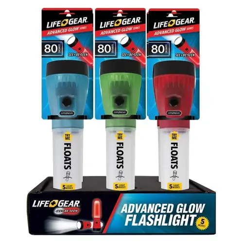LIFE+GEAR Flashlight, Lamp Type: LED, Battery Size: AA, Number of Batteries: 3, Lumens: 80 Lumens, Run Time: 25 hr, Battery Life: 200 hr, Red, Includes: Battery