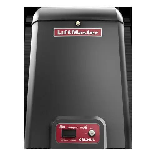 Liftmaster High-Traffic Commercial Slide Gate Operator, 24VDC. Gate Safety Sensors: Protect People Entering Or Leaving Your Garage With Safety Sensors That Stop The Gate From Closing On Obstructions. Manual Disconnect: Allow Unlocked Gates To Be Opened Manually With Manual Disconnect Feature. Fire Door Compliance: Allow Fire Department Access With Auto-Open Upon Loss Of Ac Power Or Battery Depletion. Commercial Gear-Driven Transmission Provides Unsurpassed Reliability. Ul Listed: Tested To The Most Stringent Ul 325 Industry Guidelines. External Entrapment Protection Devices Need To Be Added To Meet Ul 325 Standards. Your Installer Will Recommend Suitable Entrapment Protection Devices For Your Installation, Such As Photoelectric Or Edge Sensors. Sync: Synchronizes Gate Operation And Eliminates Costly Trenching; Set Speed Independently If Needed. For Gates Up To 50 Feet: 1 Hp Rated For Gates Up To 50 Feet In Length And 1,500 Lbs. Gate Battery Backup: Get In And Out When The Power'S Out With Battery Backup. Solar-Ready System: Power Gates In Areas Where Power Isn t Readily Available With A Solar-Ready Ultra-Reliable System. Liftmaster s Powerful Combination Of Innovative Myq Technology And Reliable Hardware Seamlessly Connects Community And Facility Access Points For A Complete, Real-Time View Of Multiple Entrances Across Multiple Properties That Enhances Security And Reduces Liability. Mfg #CSL24ULMC
