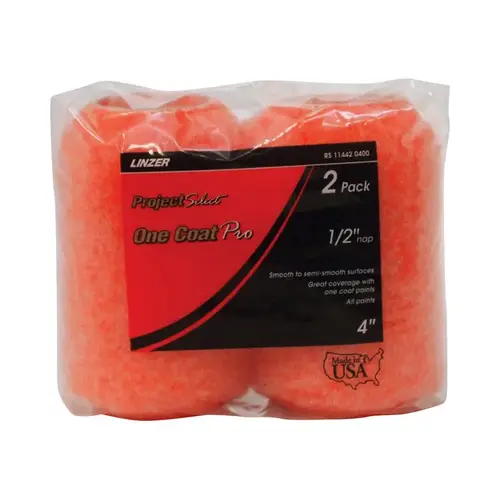 Linzer RS 11442 0400-XCP12 Paint Roller Cover Project Select One Coat Pro Polyester 4" W X 1/2" Regular Pin - 2 per pack x12 packs