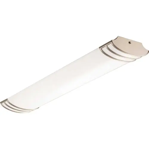 The LLThonia Lighting Futra 2-Light Ceiling Fluorescent Light has a linear design with a white, acrylic diffuser and brushed nickel end caps. This light uses 2-32-Watt T8 straight tube bulbs (not included) and is Energy Star qualified. This fixture is ideal for use in kitchens, offices, closets, laundry rooms and all rooms in the house.