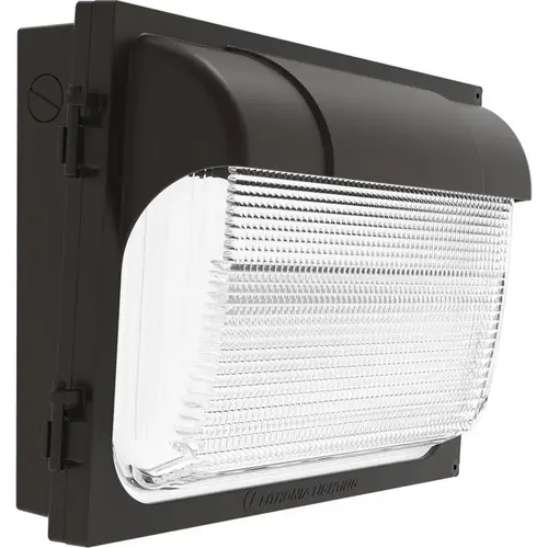 51 Watt, 6,200 Lumens, 5,000 degreeK, 120/277V, LED Wall Pack Light Fixture Wall Mount, Prismatic Glass Lens, Aluminum Housing, Bronze (Color), 7-1/2" D x 9" H x 12.9370" W