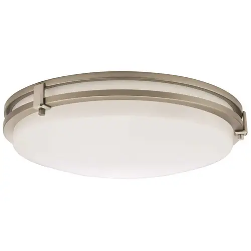 The Saturn 13 in. 16-Watt Integrated LED Flush mount from Lithonia Lighting is a contemporary style fixture with a sleek, compact design. Twin steel rings surround a dropped milk-white acrylic diffuser that provides widespread illumination and is complemented with a matching brushed nickel trim. Choosing this energy-efficient LED lighting solution over incandescent will save you money on operating costs. Best of all, the LEDs last 50,000 hours so you never have to change the bulb. This fixture is ideal for use in foyers, corridors, hallways, stairways, bedrooms, offices, utility work areas and many more commercial or residential applications.
