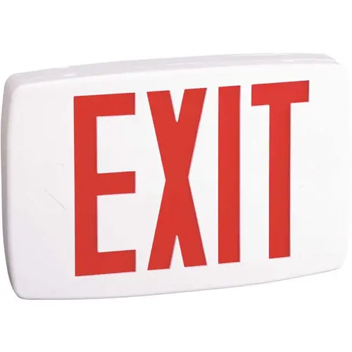 The Quantum Integrated LED Exit Sign by Lithonia Lighting features an engineering-grade thermoplastic housing that is impact resistant, scratch resistant and corrosion proof. This exit sign has a white stencil face housing with red lettering. The innovative snap-together design allows for quick and easy installation. Highly energy efficient, this exit sign consumes less than a single watt of energy. The typical life of the LED lamp is 10-years. Ideal for applications requiring attractive, quick-installation exit signs and low energy consumption.
