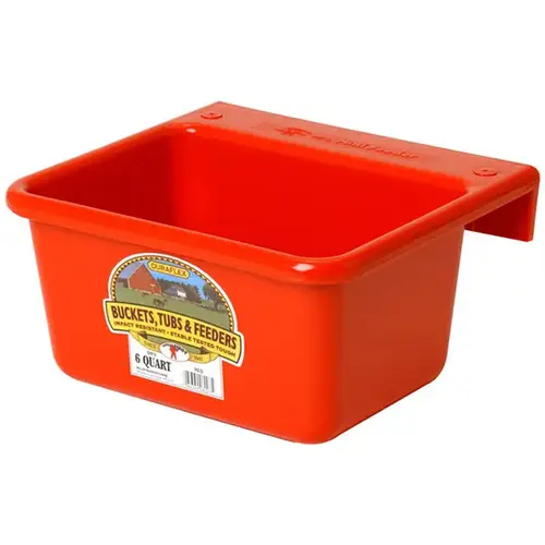 This little feeder is great for foals and other small animals. Built-in bracket hooks over any 2-by-wide board for portable use in barn, stall, pasture or pen. Two eyelets provided for permanent mounting with screws (not included) if desired. Made of tough, DuraFlex plastic.