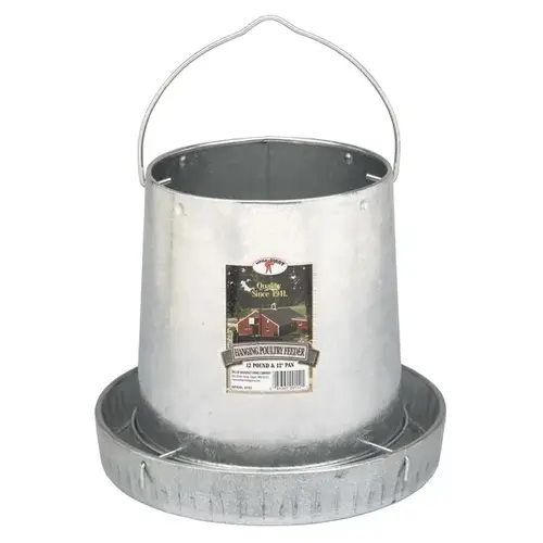 Hanging feeders save floor space, reduce waste by eliminating scratching and cut down on debris in the feed. Constructed of heavy-gauge galvanized steel for many years of service, with rolled edges for safety.