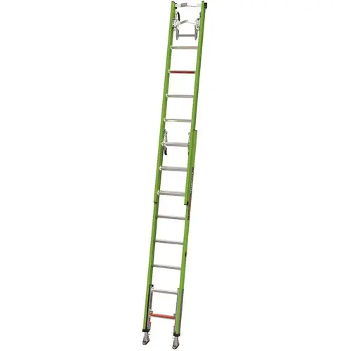 Little Giant Ladders Hyperlite, 16' Type Iaa Fiberglass Extension Ladder Weighs Up To 40 Percent Less Than Ordinary Fiberglass Extension Ladders Without Sacrificing Strength Or Stability, Depending On Size Side-Mounted, Dual-Pulley System Reduces The Effort Required To Raise The Fly Section By 45 Percent And Removes The Trip Hazard Caused By Traditional Center-Pulley Rope Systems Non-Conductive Fiberglass Construction Provides Additional Safety While Working Around Electricity Convenient Side-To-Side Level Bubble Help Ensure A Safe Setup Mfg #17516-264V