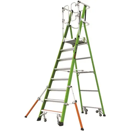 Little Giant Ladders Safety Cage 2.0 Stable, Fully Enclosed Climbing Solution Adjustable Outriggers Ground Cue® integrated bottom rung alert system Easy to Use, Store and Carry Non-Conductive, Hi-Viz Green Fiberglass Meets or exceeds all OSHA and ANSI standards Mfg #19708-146