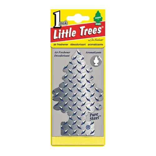 Pure Steel Little Trees have a bright, masculine fresh scent with notes of citrus, dark chocolate and amber. Plus, it's got a fun diamond plate steel design that will look great in any car, big rig, pickup or work truck.