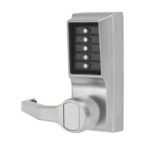 The Simplex L1000 Series provides exterior access by combination, while allowing free egress. This mechanical lock, with lever option, elimates the material and labor expense of battery replacements, has a single access-code and is programmed via the keypad without removing the lock from the door.