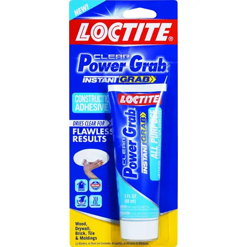 Loctite Power Grab Express all-purpose interior construction adhesive is a premium quality, high strength, gap-filling adhesive with 0 sec instant grab. This extremely high tack adhesive reduces the need for nails and screws in many DIY projects and repair jobs. The adhesive has a very low odor and requires only soap and water to cleanup. This makes it safe, easy to use and environmentally friendly. Loctite Power Grab express all purpose is also third party GREENGUARD indoor air quality Certified and GREENGUARD certified for children and schools.