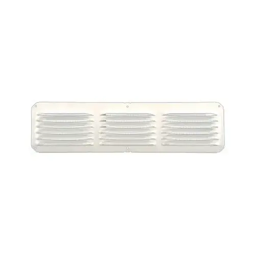 All aluminum, rust-free construction, overall size of 4 in x 16 in louver, 8 x 8 perma-coated aluminum screen attached, pre-drilled holes, unique eyebrow designed louvers provides maximum ventilating capacity with weather infiltration, 25 sq-in of net-free area.