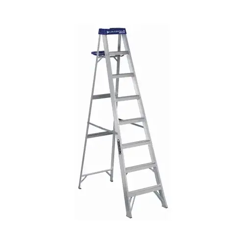 This Louisville 8 ft lightweight aluminum step ladder has a load capacity of 250 lb, rated ANSI Type I. This ladder is equipped with the innovative ProTop with magnet and multiple tool slots, molded pail shelf, angled aluminum slip-resistant rubber feet, steel gusset bracing and pinch-resistant spreader braces. This ladder is ideal for painting. The Louisville AS2106 step ladder meets or exceeds the safety standards set by ANSI, CSA and OSHA.