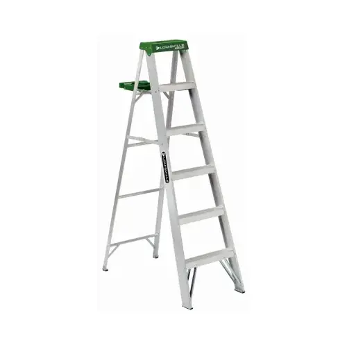 This Louisville 6 ft lightweight aluminum step ladder has a load capacity of 225 lb, rated ANSI Type II. This ladder is equipped with a molded top with handyman's tool slots, molded pail shelf, slip-resistant rubber feet, steel gusset bracing and pinch-resistant spreader braces. This ladder is ideal for painting. The Louisville AS4006 step ladder meets or exceeds the safety standards set by ANSI, CSA and OSHA.