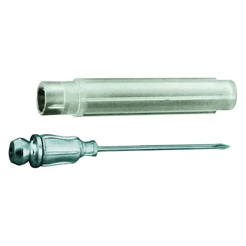 Lubricates in very tight places like universal joints and sealed bearings. Stainless steel 18 ga x 1-1/2 in long needle. Equipped with standard grease fitting and protective plastic holder. For hand-operated grease guns only.
