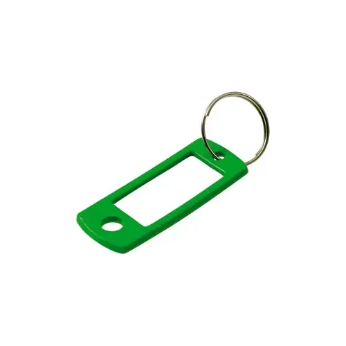 3/4" Overlapping Ring; Clear Plastic Insert Protects Writing From the Elements; Paper Insert Slides Out Easily; Flexible Colored Plastic Tag
