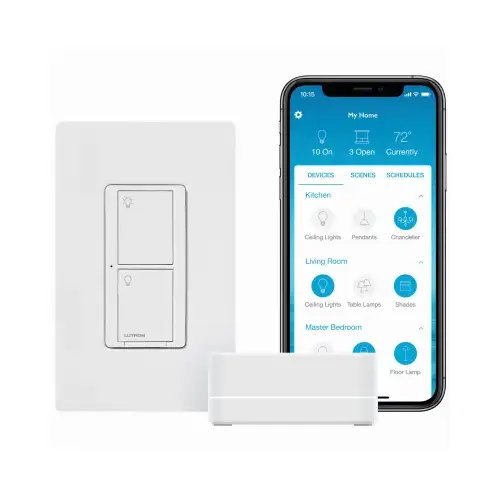 Ensure you and your family always enter a well-lit home. Use the smart switch to set your front porch lights to turn on at dusk, ensuring your home is not dark when you return. Create personalized schedules to turn lights on and off at set times to best fit your everyday routines and activate customized lighting scenes with just the touch of a button. Schedule your outdoor lights to turn on every night, as the sun sets - even when the seasons change and you gain or lose an-hour. The geofencing feature allows you to never have to worry that you forgot to turn off the lights - set your lights to instantly turn off the minute you leave your home. Caseta allows you to control your lights, your way - use the free app, your voice (voice assistant and smart bridge required), the wireless Pico remote, or the switch at the wall itself. The smart switch also allows you to control multiple styles of bulbs at once - control your deck and patio lights all at once to transform your outdoor living space for your family and guests. For added convenience, use your smart switch with a wireless Pico remote (sold separately) to turn your lights on or off with the simple touch of a button from anywhere in your home. Add an extra-point of control and mount your Pico to virtually any surface with a Pico wall mount bracket (sold separately), no cutting holes or pulling wire required.