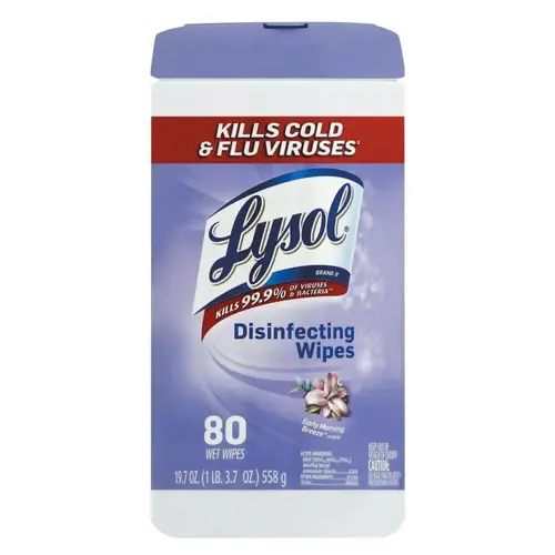 LYSOL 89347CT Disinfecting Wipe, 7 x 8, Early Morning Breeze, 80/Canister White - pack of 6