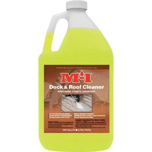 M-1 deck and roof cleaner is a combination of cleaning agents designed to clean and remove dirt, mildew,algae and fungus stains. It will restore the appearance of weathered wood and is also recommended for cleaning composite decks.