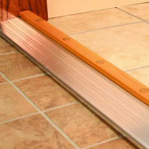 Set screws allow for adjustment to seal uneven gaps between bottom of door and floor for a weathertight seal. "Thermal-Break" design prevents frost build-up on interior surface of threshold. Height of 1-3/8 to 1-5/8 in.