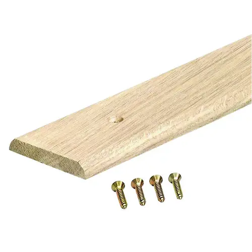 The 2-1/2 x 72 in unfinished hardwood seam binder easily covers a seam or gap between two flooring surfaces of equal height. Seam binders prevent carpet edges from fraying, vinyl floor seams from curling and creates a smooth transition between different flooring surfaces. Seam binders are easily secured to wood and concrete floors with provided screw nails. For installation on concrete floors use wooden pegs.