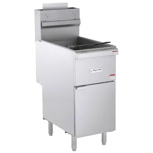 40 Lbs. Gas Fryer- Propane. 2 Frying Baskets. Temperature Range 122degree F - 375degree F. 14.1"Wx13.8"Dx8.4"H Frying Area. Cast Iron Burners With Built-In Deflectors. 1 -1/4" Drain Port For Emptying Frypot. Nickel Plated Baskets, Vinyl Coated, Heat Protection Handles. 1 X Oil Drainage Extension Tube. 6" Telescopic Legs. Mfg #MCCGF40A-P