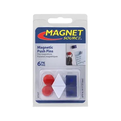 Magnet Source 07507 Magnetic Push Pins .625" L X .5" W Assorted Neodymium/Plastic Assorted