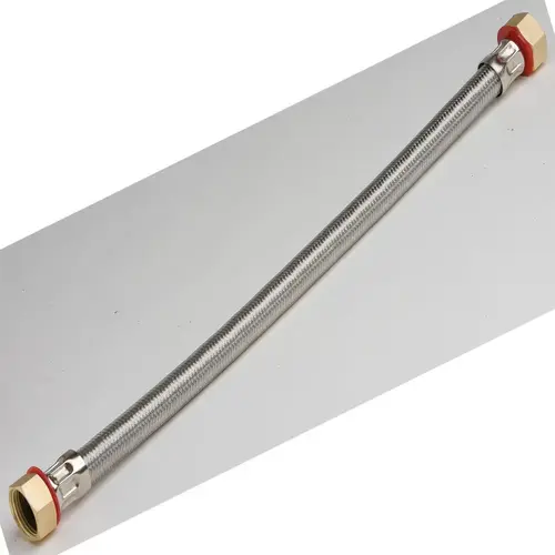 Maintenance Warehouse Water Heater Connector. Braided Stainless Steel. 24" Length. 0.75" Fip X 0.75" Fip. Brass Nuts. Mfg #403380