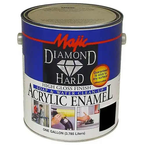 DESCRIPTION: This is truly one of the finest quality general purpose coatings available today. Diamondhard Acrylic Enamel features superior adhesion to almost any interior or exterior surface with a resilient durable finish that lasts for years. This is a water base formula that offers added convenience and safety in a product that will out perform conventional oil base paints in most situations. SURFACE PREP: General: Surfaces to be painted must be clean, free of dirt, chalk, grease, loose paint and all other residue or contaminants. Scrape, wire brush and sand to remove loose or unsound paint layers. Clean the surface by washing with a low sudsing detergent and water. Remove mildew by washing with a solution of household bleach and water (1:3). Rinse thoroughly. Allow surfaces treated with bleach solution to dry at least 48 hours before painting. Stains from ink, smoke, water and grease should be sealed with a good stain killing primer. Wood: This product can be applied directly to wood. But for best appearance, use an oil base enamel under coater or acrylic primer before applying the finish coat(s). Metal: Clean new metals with a solvent such as mineral spirits to remove grease and oily residue. Allow solvent cleaned surfaces to dry completely. Remove all rust by wire brushing, sanding or chemical treatment. On ferrous metals subject to corrosive conditions or where rust has been a recurring problem, use a rust inhibiting primer. No primer is required for aluminum. Masonry, Brick & Concrete, Drywall and Other Surfaces: This coating will adhere to a wide variety of other surfaces. If you are painting a difficult or unusual surface, first paint a small area, allow to cure for 5 days, and test for adhesion by apply masking tape to the surface then removing the tape in a quick upward motion. If the finish does not lift, you have a suitable surface for painting. See label for additional details. APPLICATION: Do not apply at temperatures below 50+ALA-F. Avoid painting in direct sunlight or during unusually hot or windy conditions. Do not paint exterior surfaces at night or during damp or rainy weather. Apply this product with a good quality polyester brush or premium short nap (3/16 -1/4 ) roller. Apply a full even coat, brushing out to avoid runs and sags. This product provides superior leveling which will eliminate brush marks as it dries. Avoid over brushing after the paint has begun to dry or tack. If you must stop painting before finishing your project, stop at a corner, edge or other breakpoint, rather than the middle of a surface. If applying with airless spray equipment, apply at package consistency, unthinned. A .013-.015 tip at 1,200-1,800 PSI is recommended. For conventional spray, thin sparingly with clean water up to one pint per gallon. If applying more than one can of product, intermix or box the paint together to ensure maximum color uniformity.