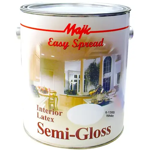 Majic Easy Spread Paints provide an economical finish without compromising quality. This is an economical quality vinyl-acrylic formulation that offers dependable performance and exceptional value as modern latex enamel for primed or previously painted drywall, plaster, wood or metal. Dirt and grease are easily removed from the finish by simply wiping with a rag and soapy water. Majic Easy Spread interior latex semi-gloss enamel dries to a tough semi-gloss finish coat.