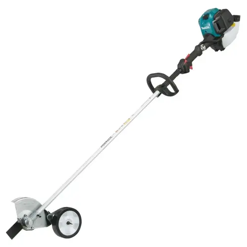 The Makita 25.4 cc MM4 edger (model EE2650H) delivers power and ease-of-use for commercial duty applications. The Makita 4-stroke engine requires no fuel mixing, so users can use straight gas without the expense of 2-stroke oil. For added convenience, the trimmer is engineered with mechanical automatic engine decompression for quicker, easier starts. In addition, the commercial duty dual stage air filter with large sealing areas is replaceable and easily accessible and the oil filling port and drain plug are easily accessible with oil level view window for easy checking and replacing of oil. The EE2650H has an 8 in steel blade for precise cuts for a clean edge. For added durability, the metal skit plate protects gear housing. In addition, the steel drive shaft is engineered for reduced vibration and longer tool life.