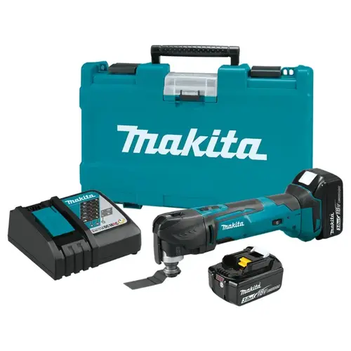 Includes: (1) 18V LXT Multi-Tool (XMT03Z) (2) 18 V LXT Lithium-Ion 3 Ah Battery (BL1830B) (1) 18V LXT Lithium-Ion Rapid Optimum Charger (DC18RC) (1) 1-1/4 Plunge Blade (BiM) 14TPI (A-95255) (1) Multi-Tool Adapter (313249-6) (1) Multi-Tool Adapter (196271-6) (1) Sanding Pad Multi-Tool TM3000C LXMT (A-95423) (1) 120 Grit Sandpaper (A-95532-1) (1) 180 Grit Sandpaper (A-95548-1) (1) Tool Case