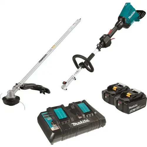 Includes: (1) 18 V X2 LXT Brushless Couple Shaft Power Head (1) 18 V LXT Lithium-Ion Dual Port Charger (1) String Trimmer Couple Shaft Attachment (2) 18 V LXT Lithium-Ion 5 Ah Battery