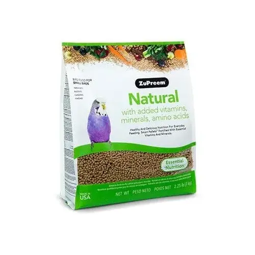 Natural with added vitamins, minerals and amino acids provides healthy and delicious nutrition for everyday feeding for Parakeets, Budgies, Parrotlets, Canaries, Finches, and other small birds that prefer this pellet size.