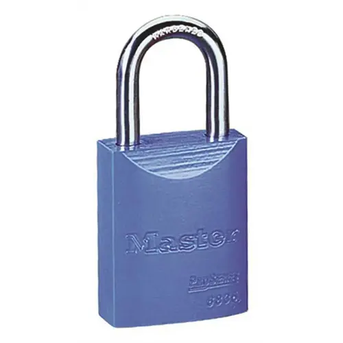 The Master Lock Number 6835LFBLU Powder Coated Aluminum Padlock features a 1-1/2 in. W (38 mm) aluminum body and a 1-1/2 in. H (38 mm), 1/4 in. Dia (6 mm) boron shackle for excellent cut resistance. Ideal for corrosive and tough environments, the baked on powder-coated finish, high visibility color stays bright and a 5-pin tumbler cylinder provides high security. The Limited Lifetime Warranty provides peace of mind from a brand you can trust.