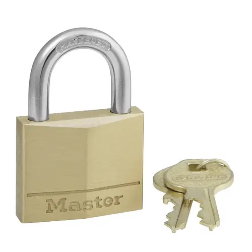 Master Lock Padlock, Shackle Diameter: 1/4 in, Shackle Width: 13/16 in, Shackle Material: Steel, Shackle Clearance: 7/8 in, Key Type: Alike, Key Number: 1G028, Locking Mechanism: Tumbler, Number of Pins: 4, Body Width: 1-9/16 in, Body Material: Brass, Includes: (6) Padlocks