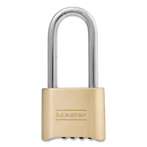 Master Lock 175LHSS No. 175LH Resettable 4-Digit Combination Padlock, 5/16 in dia x 2-1/4 in H SS Shackle, 1 in W Clearance, Brass Lock - pack of 6
