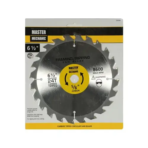 Master Mechanic, 6-1/2", 24 Tooth, Framing Combination & Rip Circular Saw Blade, For General Purpose Fast Crosscuts, Rips, Miters In All Woods, Carbide Tipped Blades Stay Sharp Longer, Cut Hard Materials Better, Plastic Storage Case Package With Hang Tab.